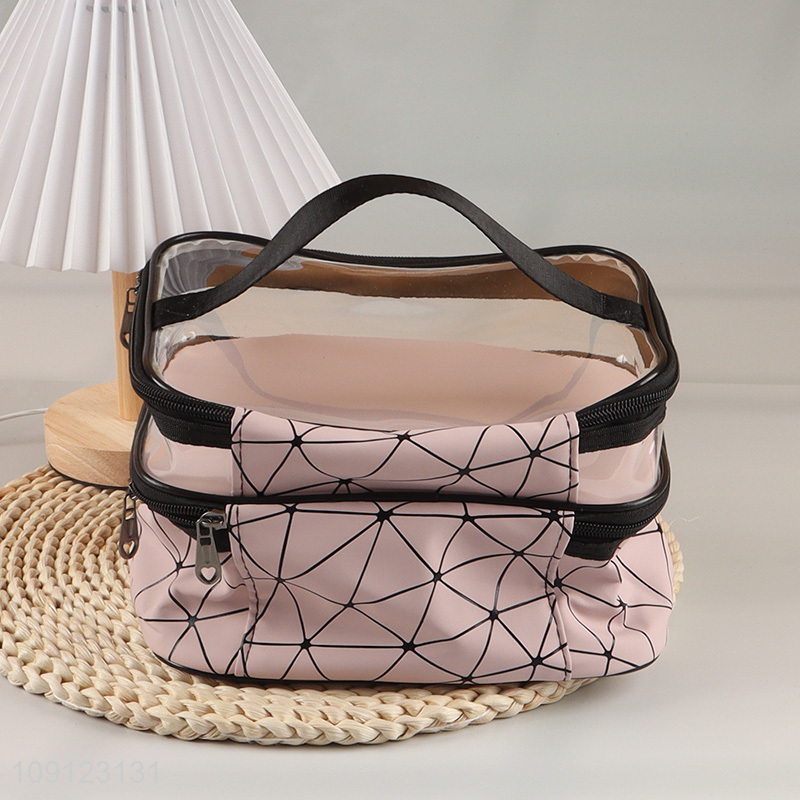 Wholesale PU Leather Makeup Bag Double-Layer Cosmetic Case Toiletry Organizer