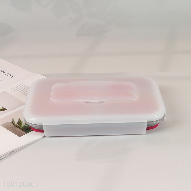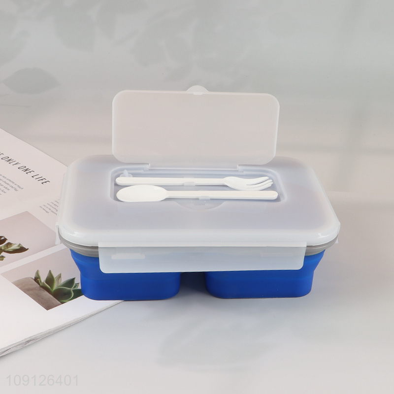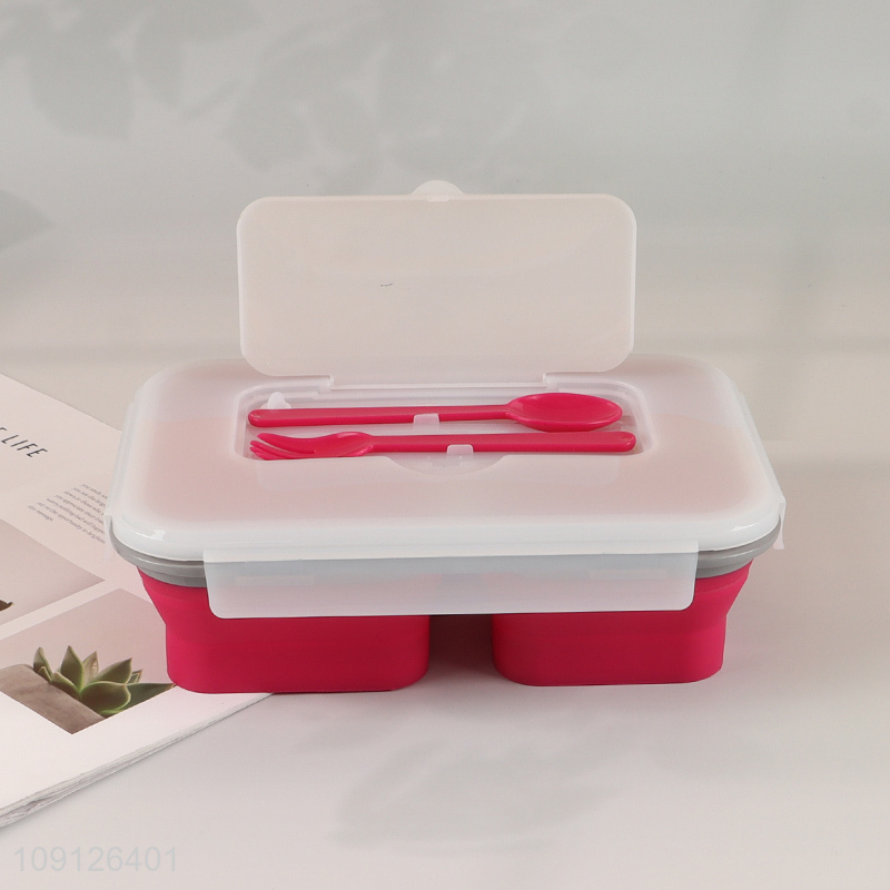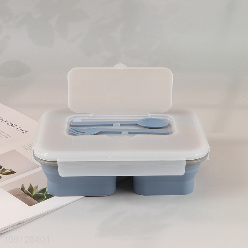 Wholesale 3-Compartment Collapsible Lunch Box Slicone Lunch Container with Spoon & Fork