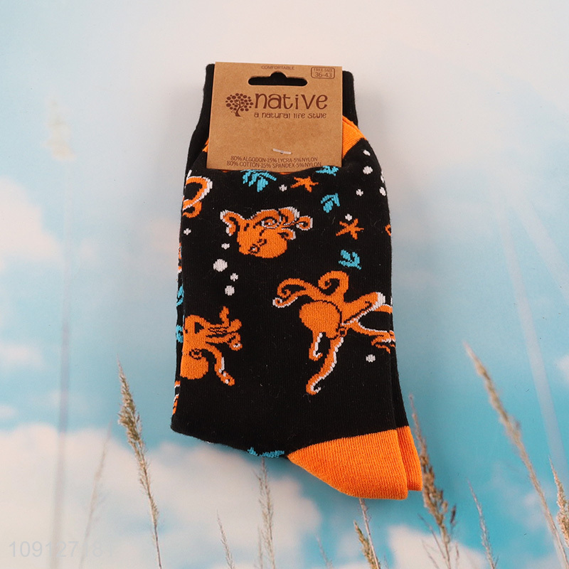 Good selling cartoon printed cotton breathable mid tube socks wholesale