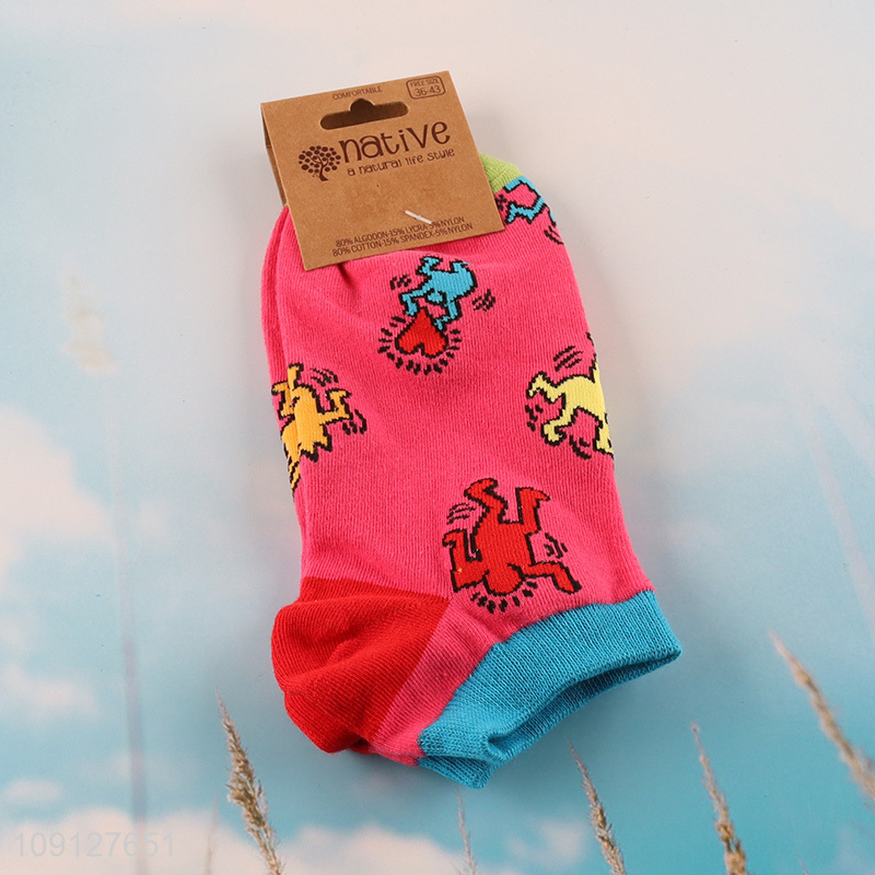 Hot sale cartoon printed cotton socks ankle socks for men women