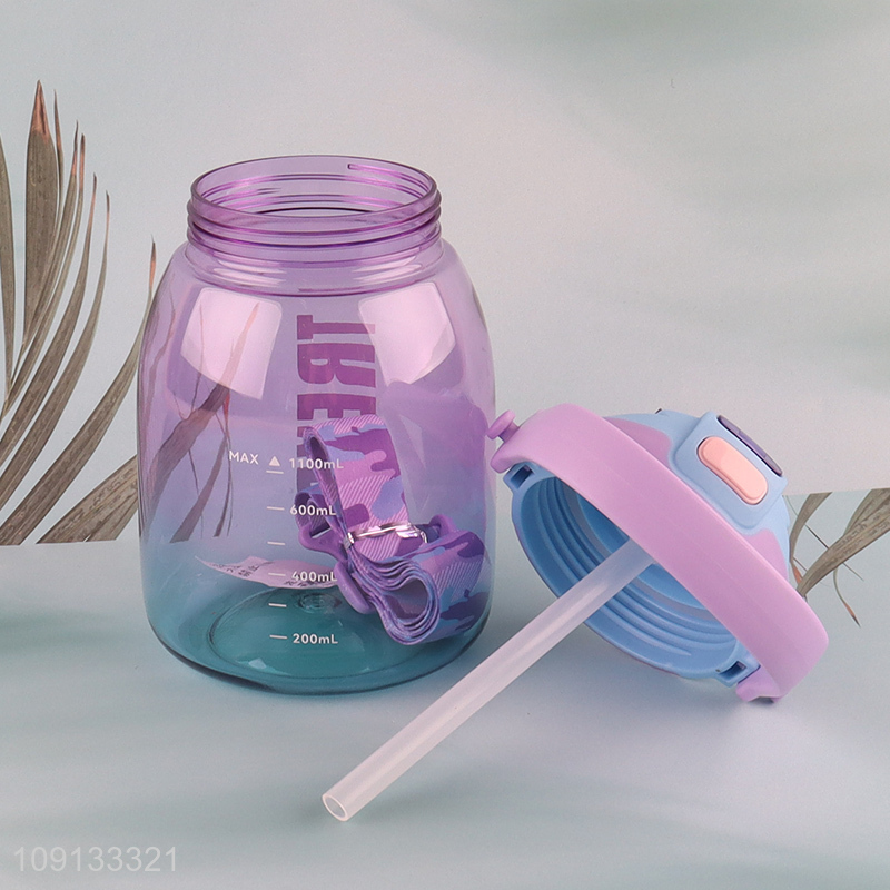 Online Wholesale 1100ml Plastic Kids Water Bottle with Straw & Strap