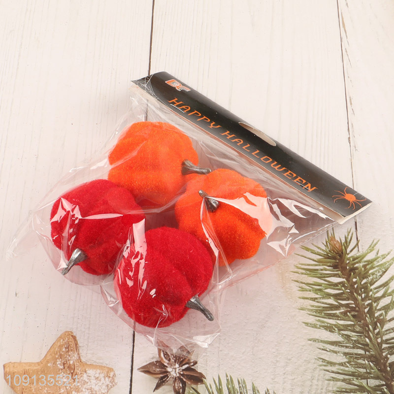 Factory Supply 4 Pieces Faux Velvet Pumpkins Foam Pumpkins for Halloween Decor