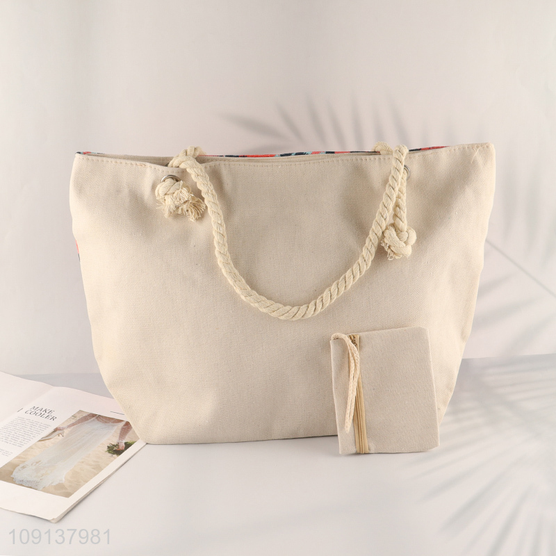 China Imports Zipper Canvas Beach Tote Bag with Rope Handles