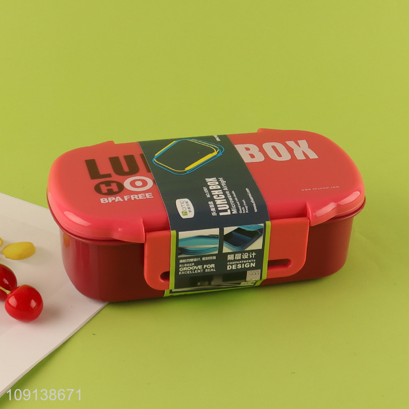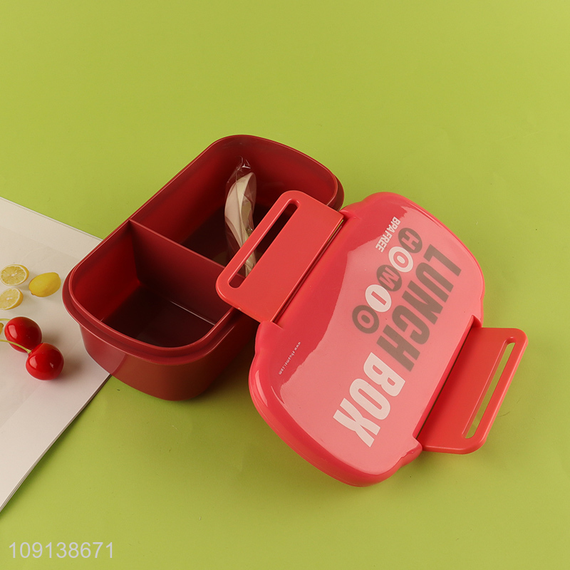 New Product 2-Compartment Leakproof Plastic Bento Lunch Box with Spoon