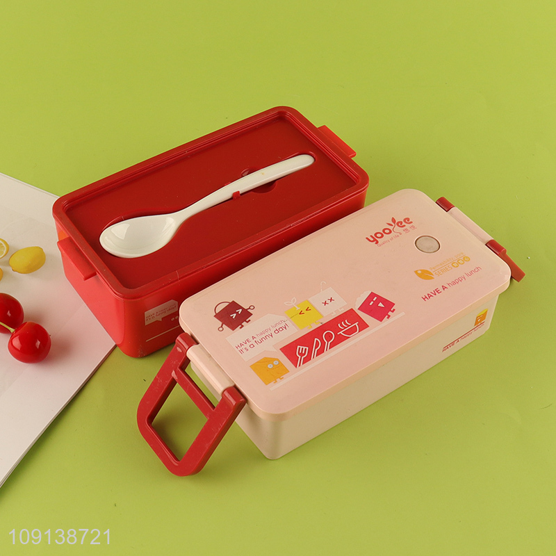 New Arrival 2-Layer Microwave Safe Plastic Bento Lunch Box with Spoon