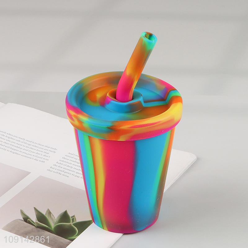 Factory direct sale colorful silicone water cup straw cup with lid