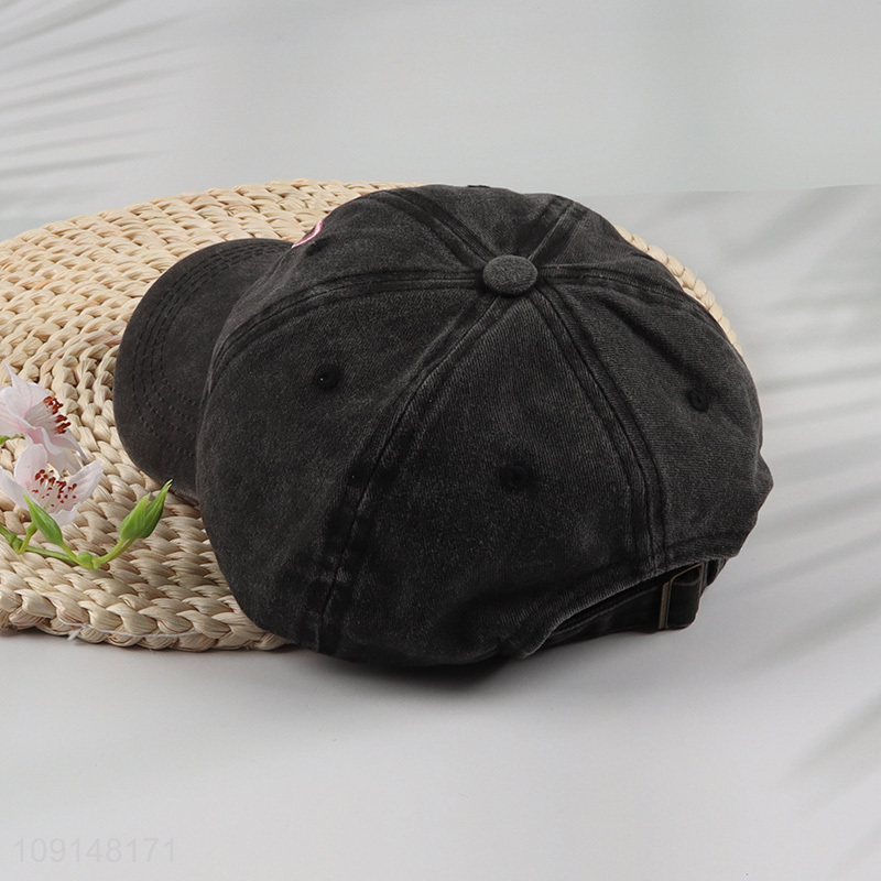 Low price black embroidery fashion cotton peaked cap for sale