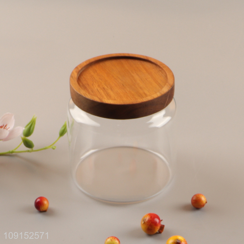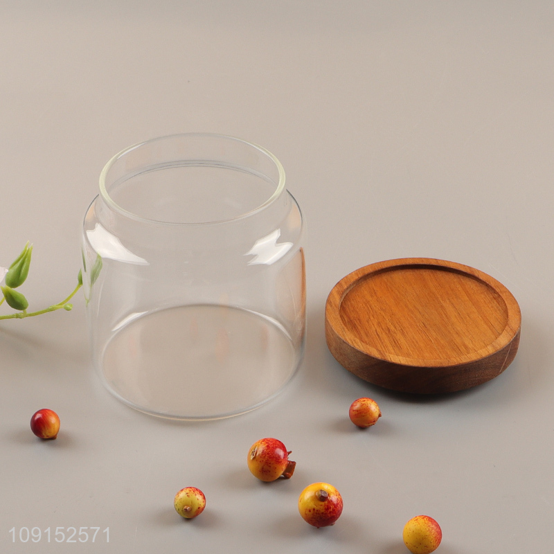 Factory price round sealed glass storage jar with wooden lid