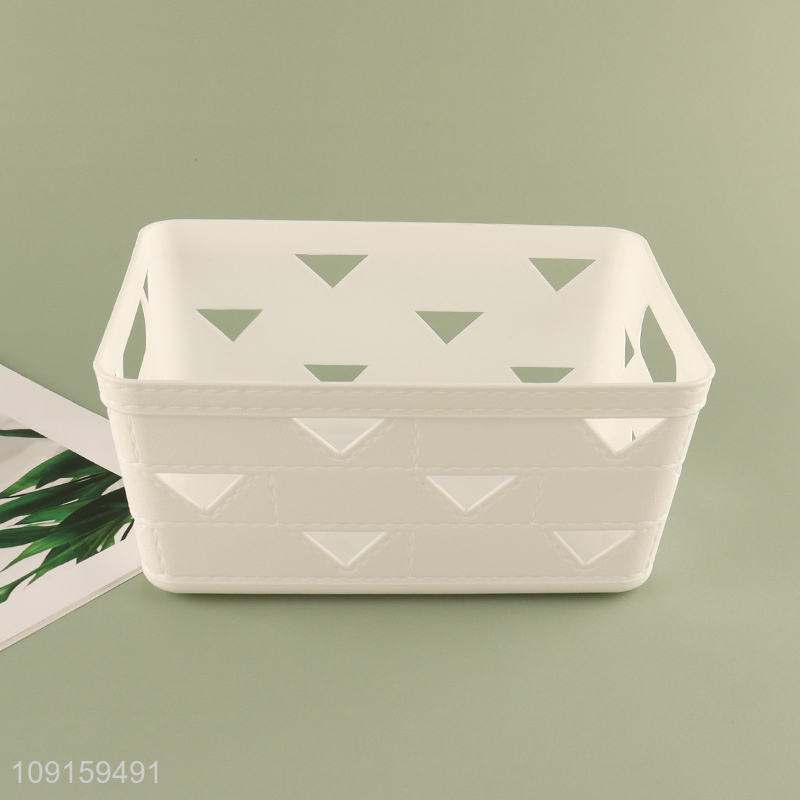 Top selling rectangle hollow plastic storage basket for desktop