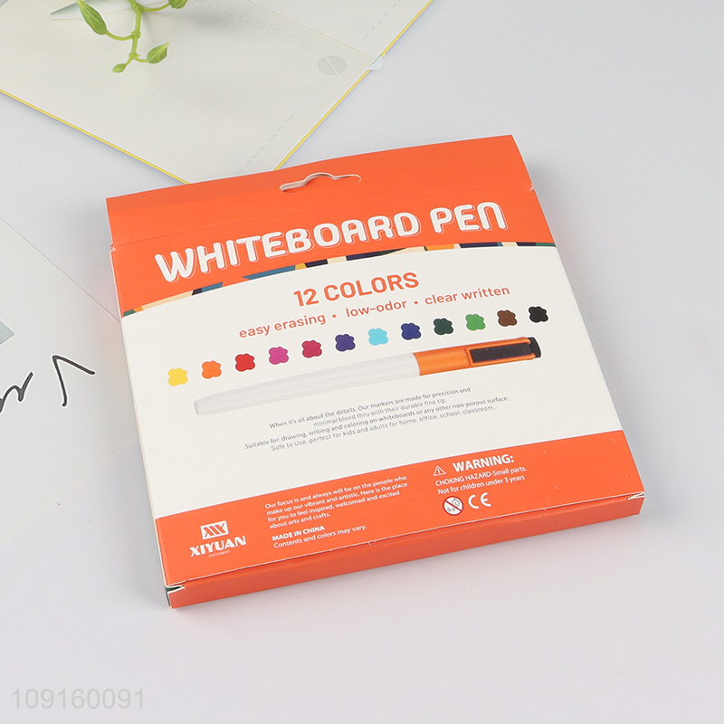 New Product 12 Colors Fine Tip Dry Erase Low Odor Markers for Whiteboard