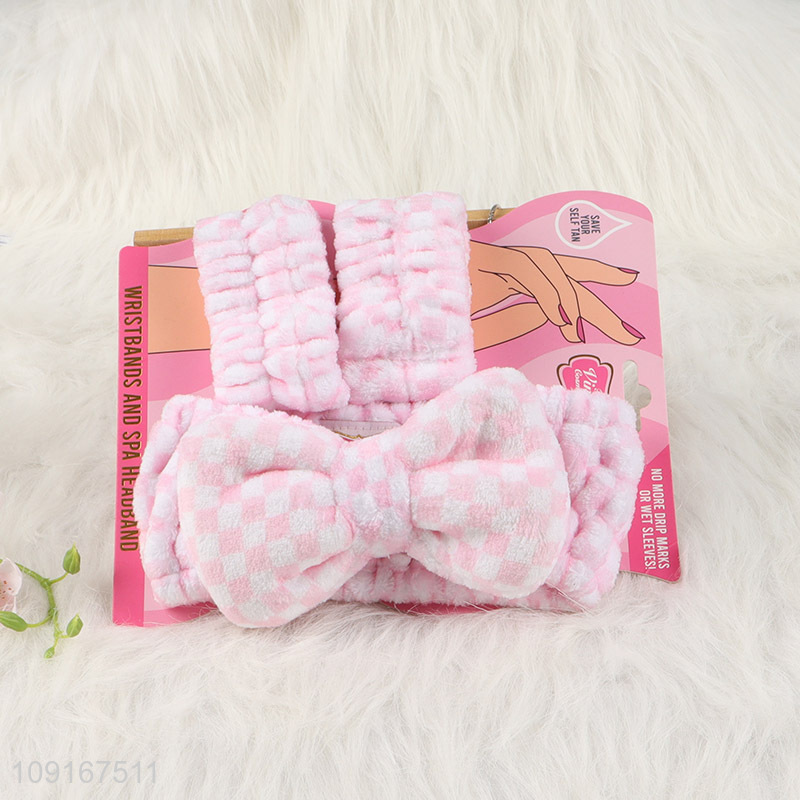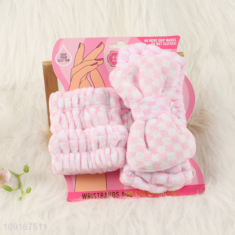 Good Quality 3PCS Spa Headband and Wristband Set for Washing Face & Skin Care