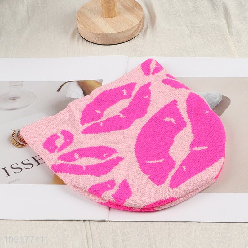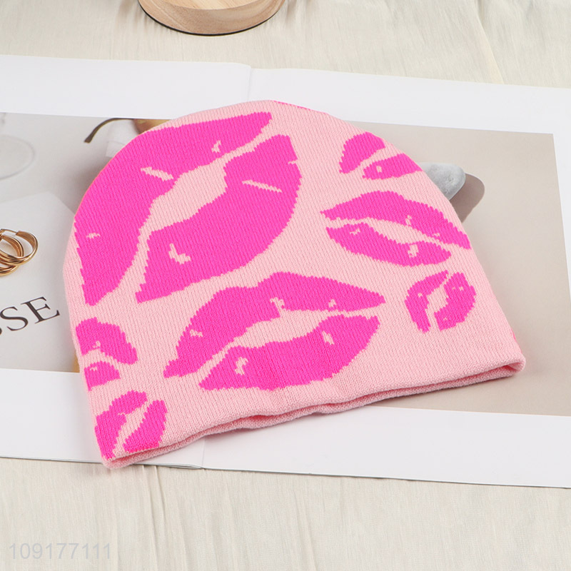 Hot Selling Lip Pattern Beanie Hat Winter Warm Knitted Beanie Cap