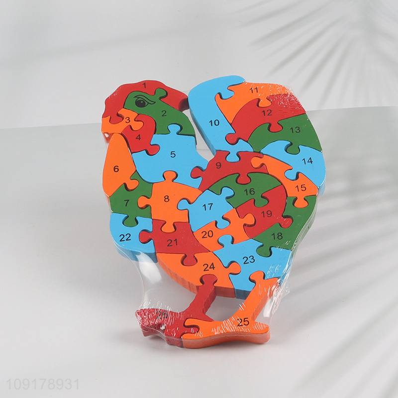 Factory Supply Wooden Animal Alphabet Number Puzzle for Toddlers (Cock)
