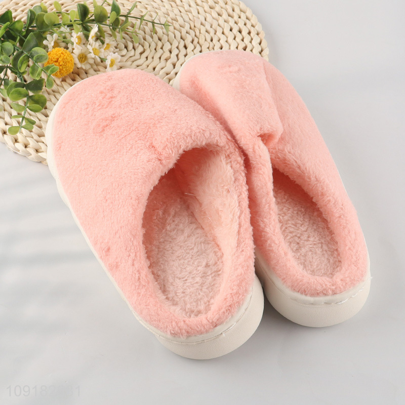 Hot selling pink cotton winter plush women home slippers