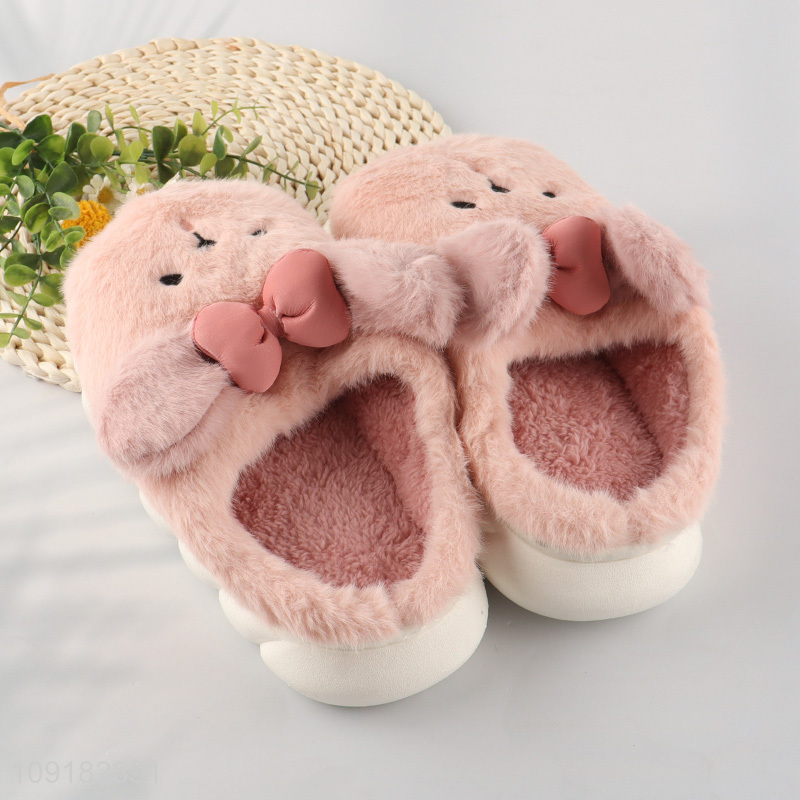 Factory direct sale pink rabbit winter plush girls home slippers