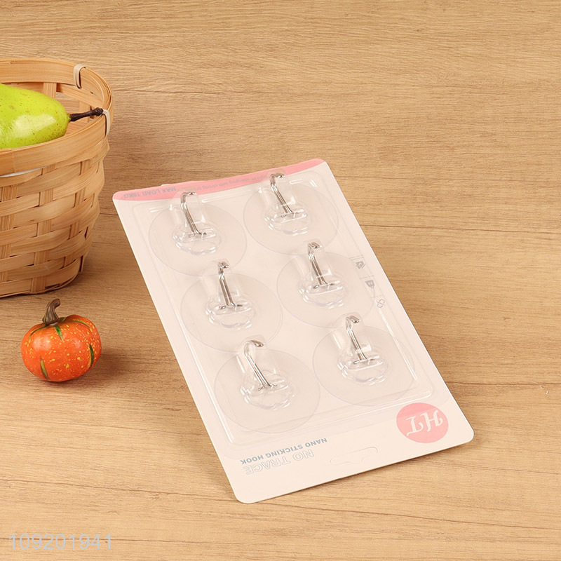 China products 6pcs clear round sticky hook adhesive hook set