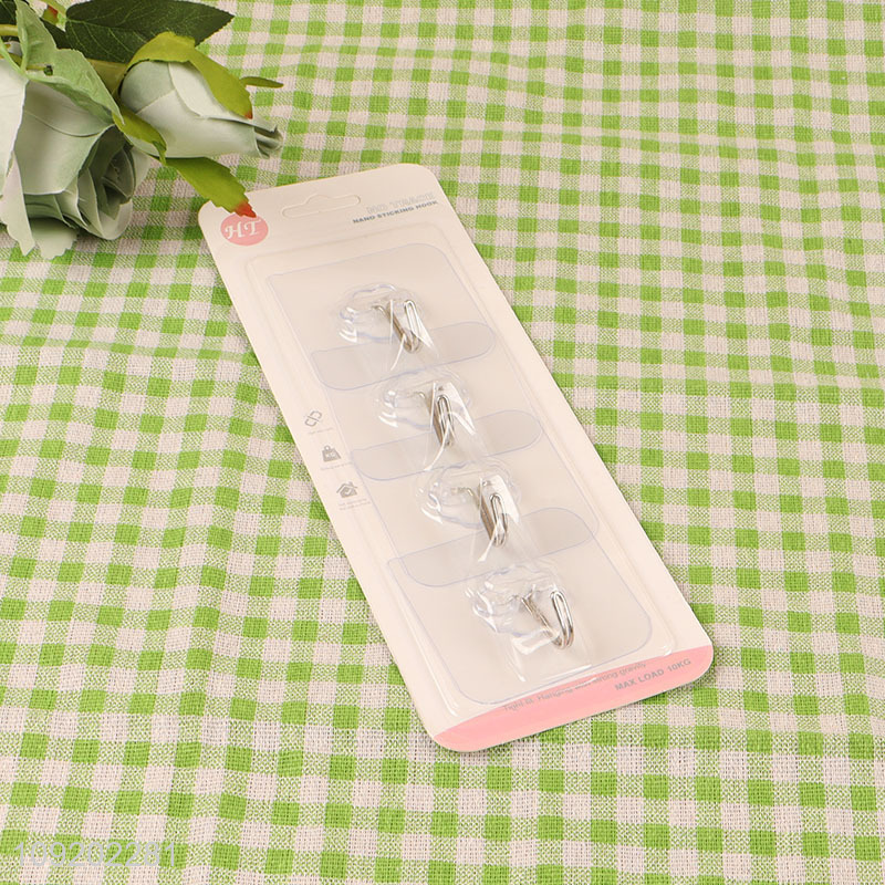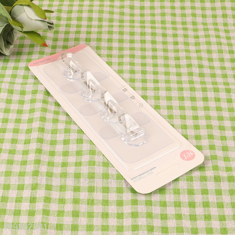 Good price 4pcs clear bathroom kitchen sticky hook adhesive hook