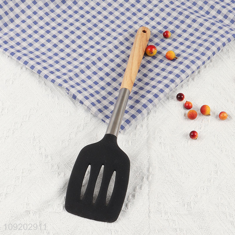 Top quality non-stick kitchen utensil slotted spatula with wooden handle
