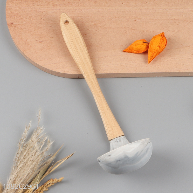 China wholesale silicone kitchen utensil soup ladle with wooden handle