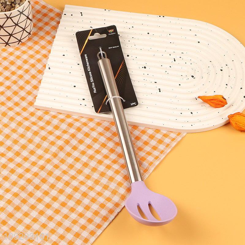 Latest products long handle silicone kitchen utensil slotted ladle for sale