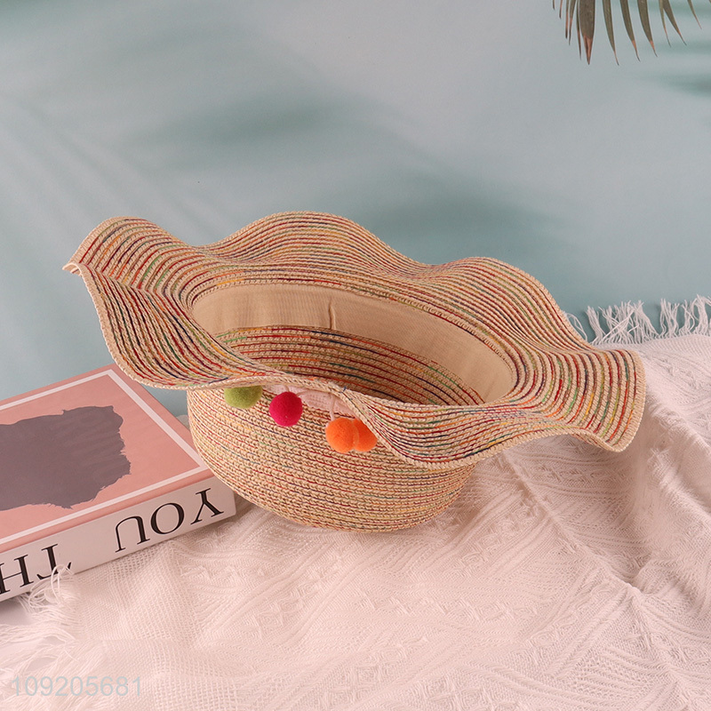 High Quality Women'S Straw Hat Wavy Brim Summer Beach Sun Hat