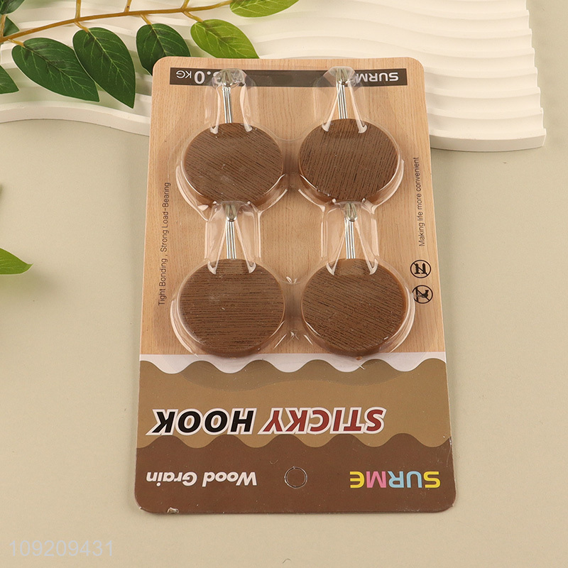 Factory Supply 4 Pack Wood Grain Sticky Hooks Strong Adhesive Hooks