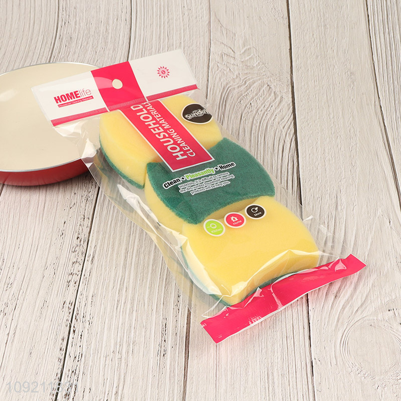 Online wholesale 3pcs double-sided kitchen dish washing scouring pad cleaning sponge