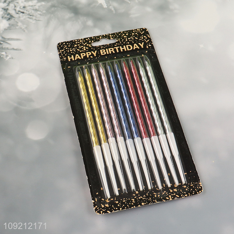 Factory Price 10-Count Spiral Birthday Candles Metallic Cake Candles