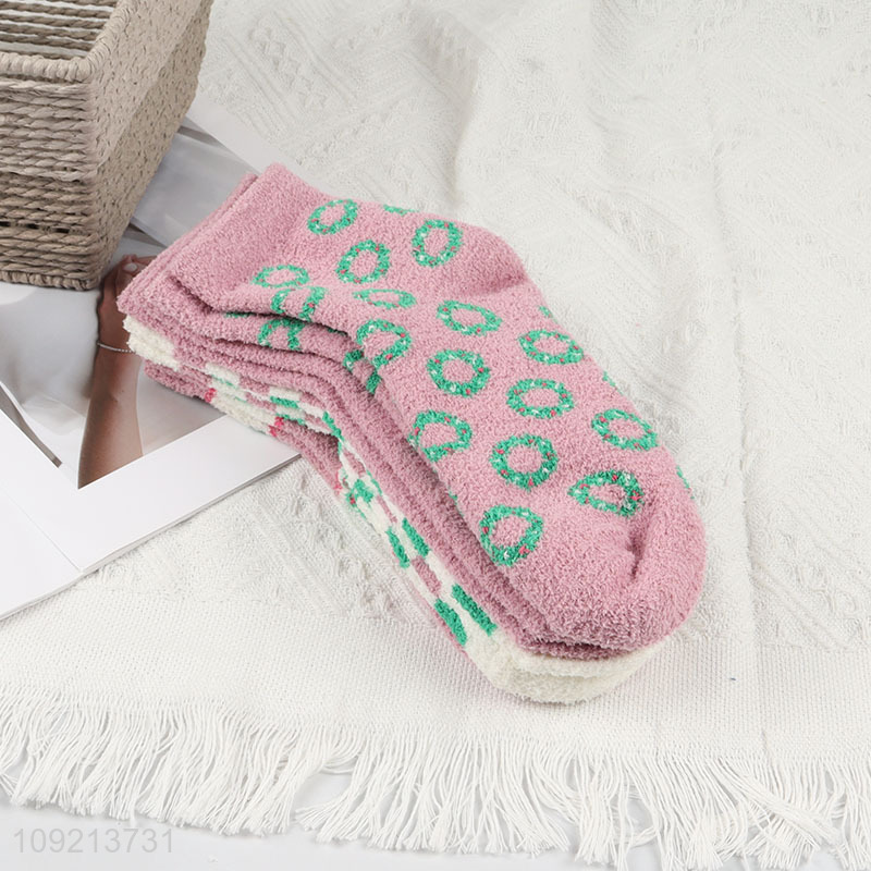 Yiwu market 4pairs winter warm women micro cozy crew socks set