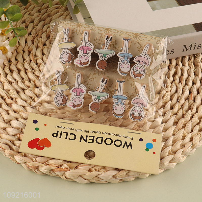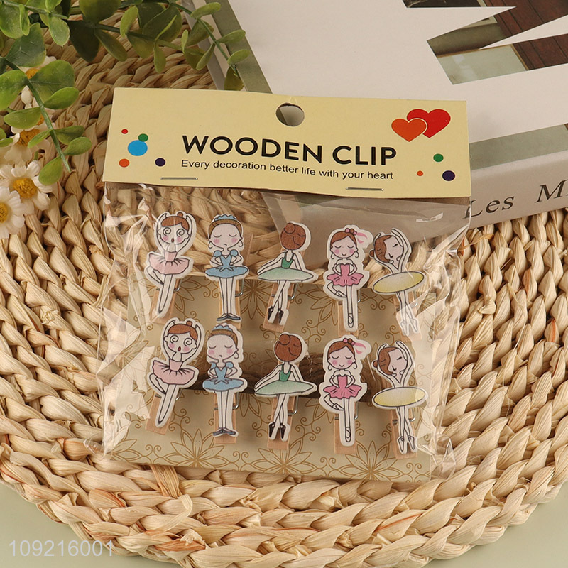 Popular products 10pcs cartoon dancing girls paper clips wooden clips