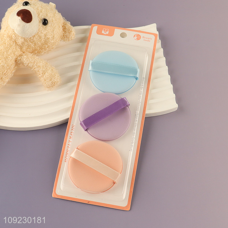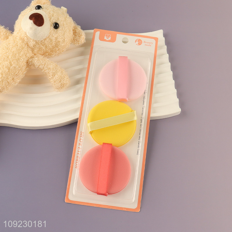 Goood quality 3pcs round multicolor makeup puff cosmetic sponge set for sale