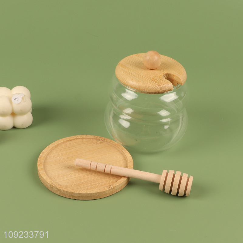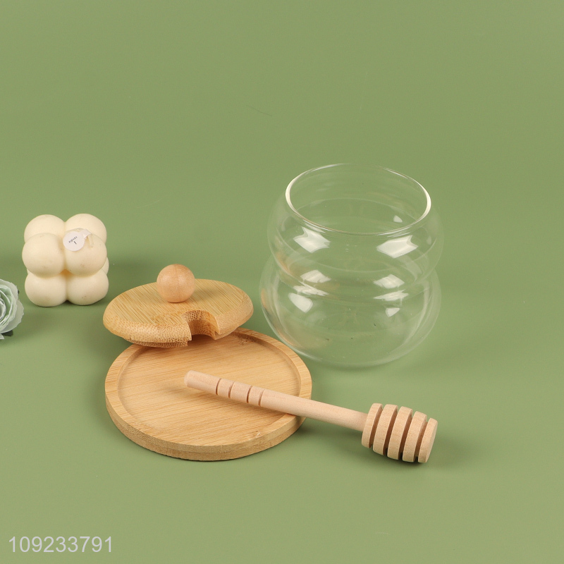 New Product 300mL Glass Honey Jar with Bamboo Lid & Dipper Stick