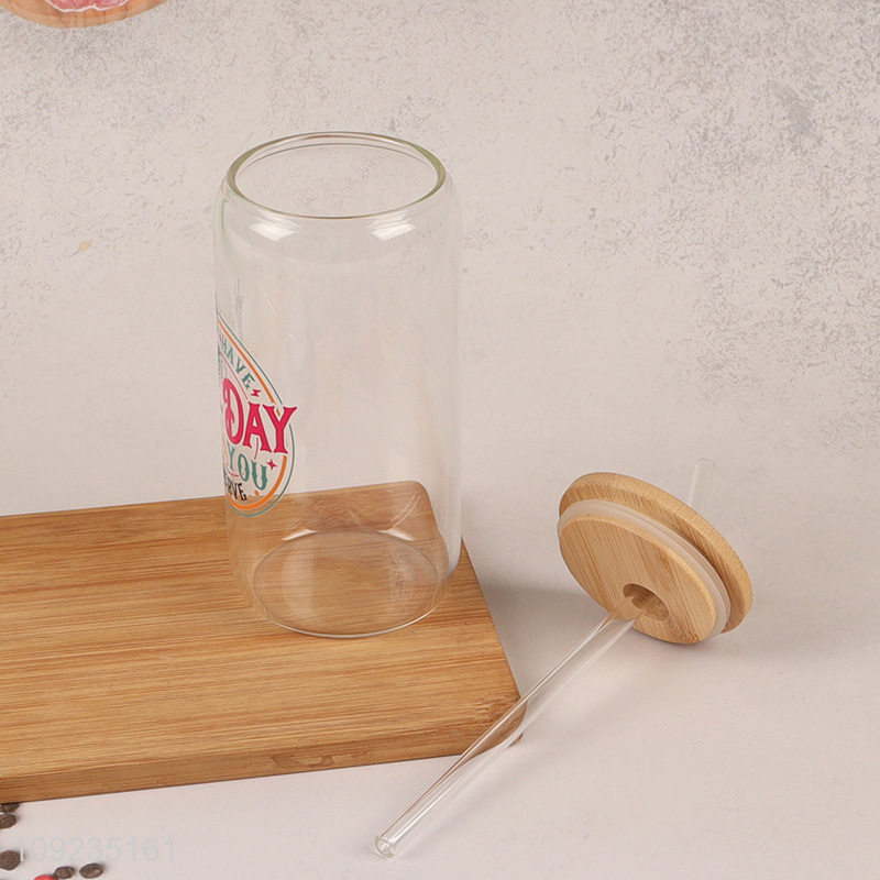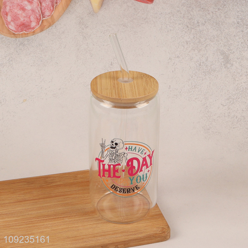 Wholesale High Borosilicate Glass Cup with Lid & Straw for Iced Coffee