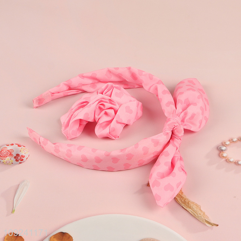 New Product Heart Printed Headband and Hair Scrunchie Set Birthday Gifts