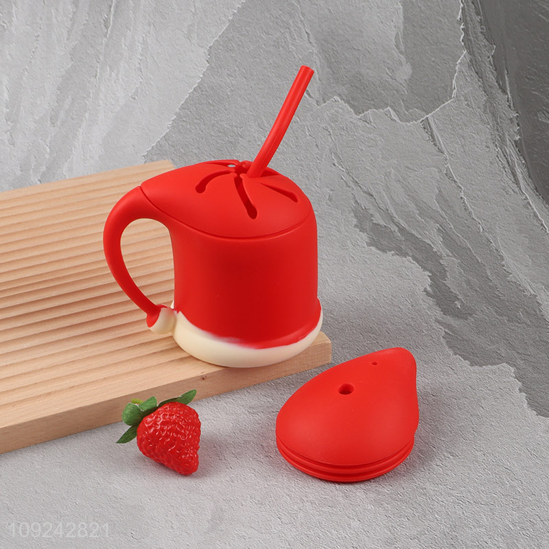 Yiwu market red silicone baby snack cup straw cup baby training cup