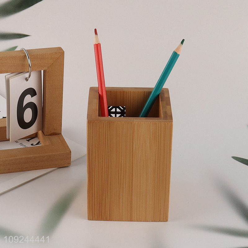 Good Quality Bamboo Wood Pencil Holder Stand Office Desktop Organizer