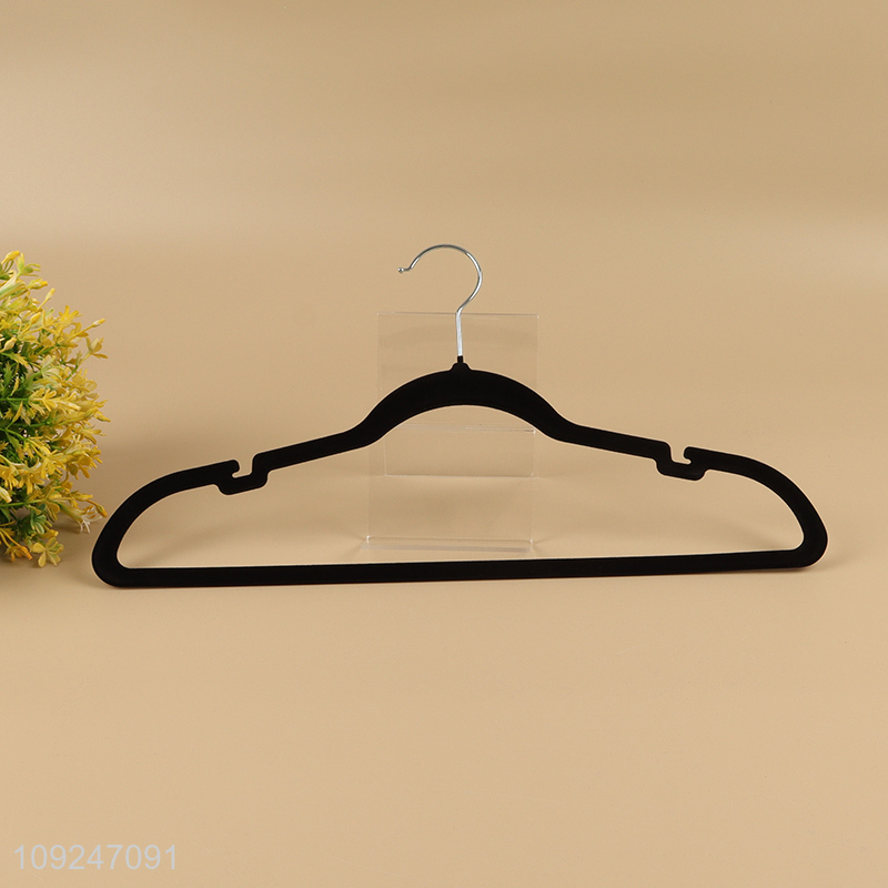 Hot items black non-slip flocked clothes hanger coat hanger for sale