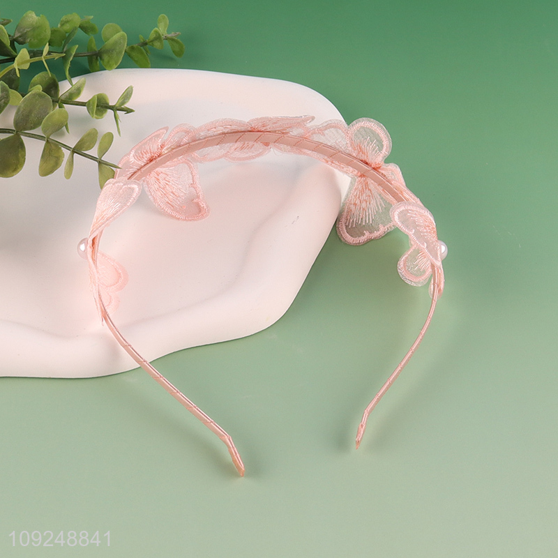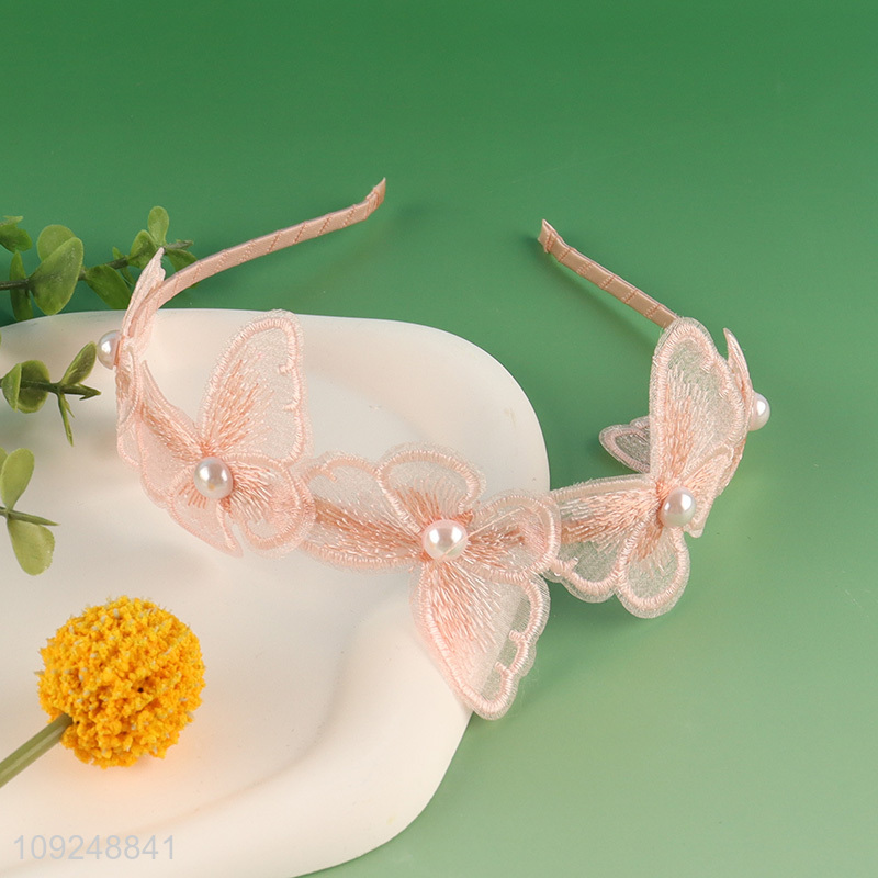 New Product Mesh Butterfly Pearl Headband Trendy Hairband Sweet Hair Hoop