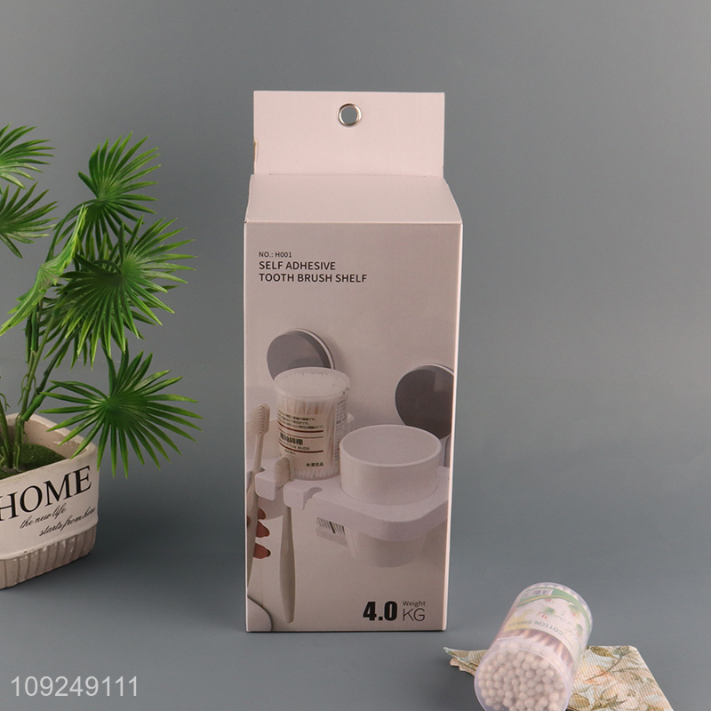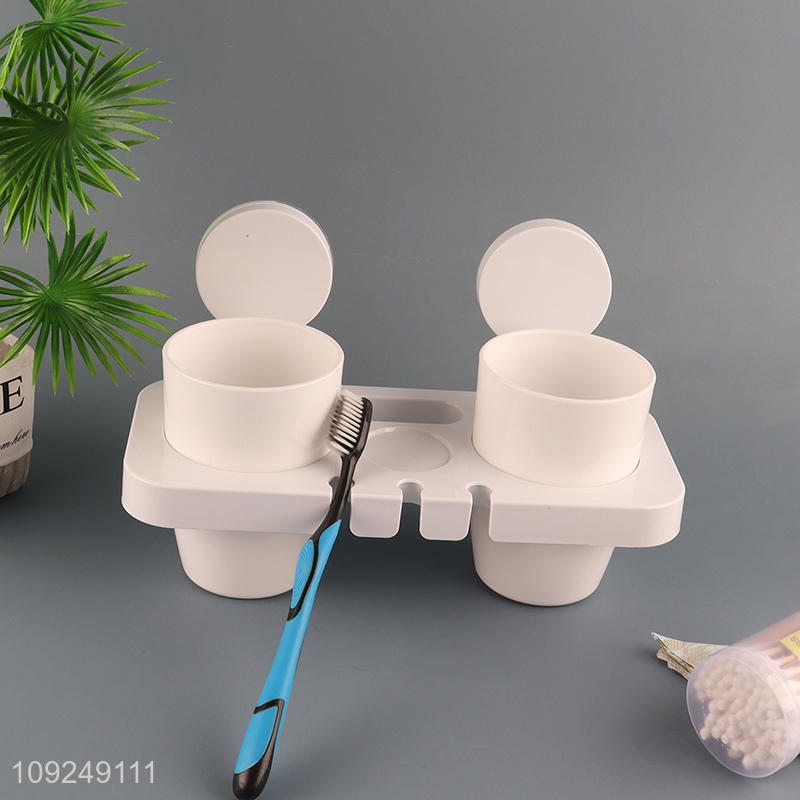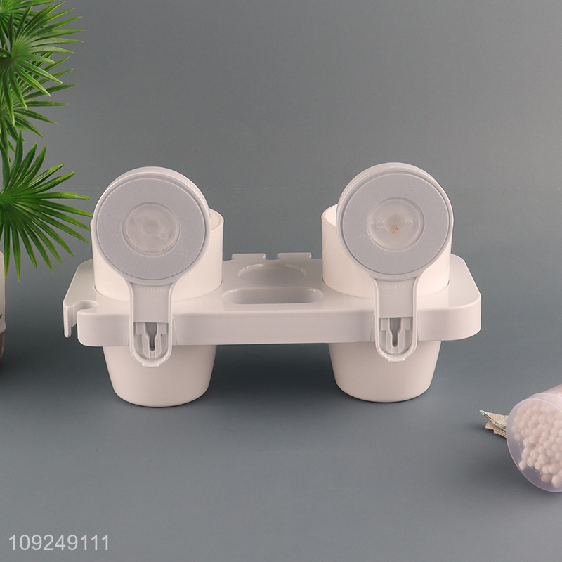 Online Wholesale Wall Mounted Suction Cup Toothbrush Shelf with 2 Toothbrush Cups