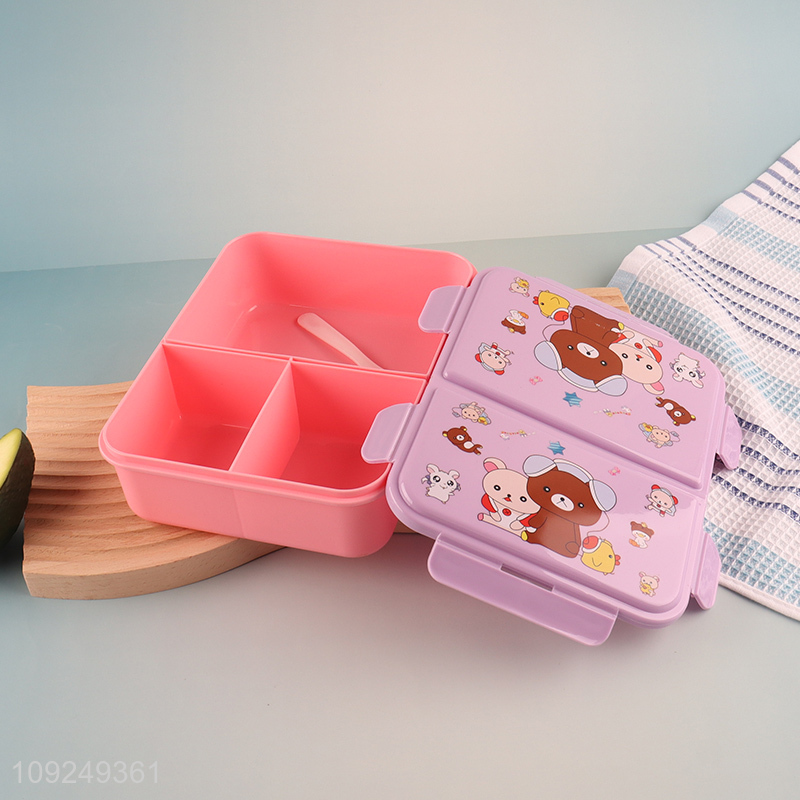 High Quality Bpa Free Plastic Bento Lunch Box with Spork for Kids Boys Girls