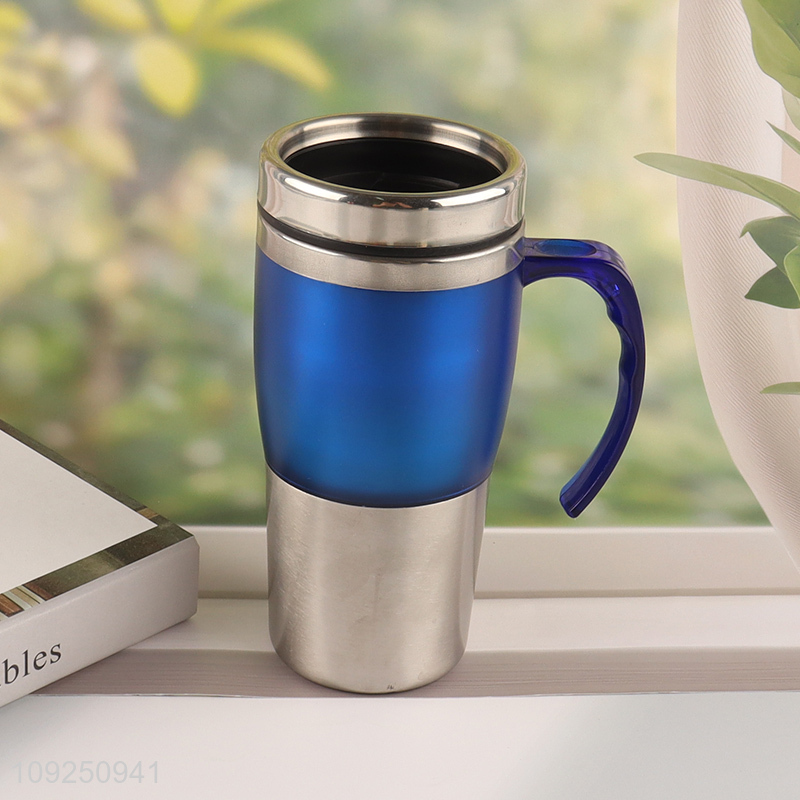 Factory Supply Stainless Steel Insulated Travel Mug with Colroful Plastic Handle