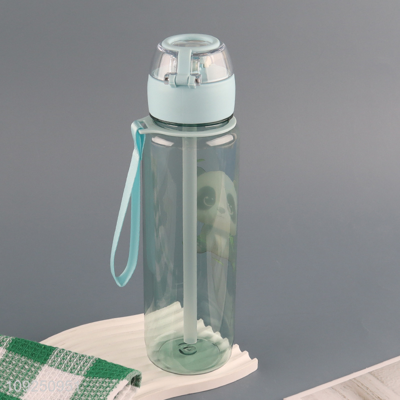 Wholesale Cartoon Panda Printed Plastic Water Bottle with Flip Top & Handle