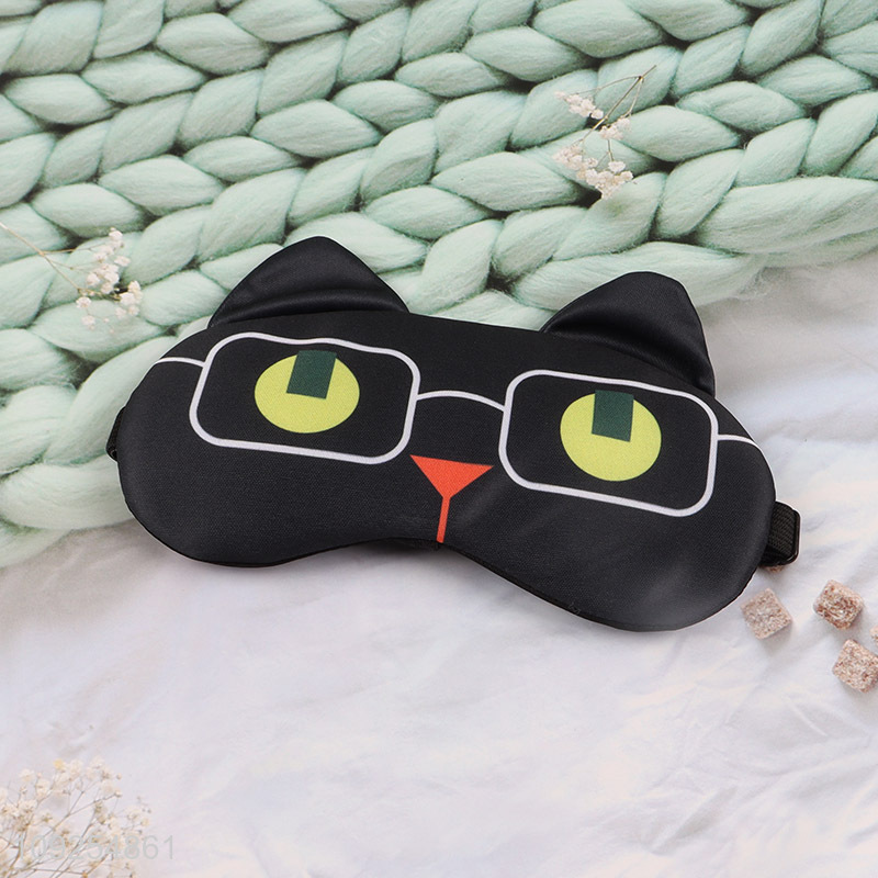 Yiwu market cartoon black cat sleeping eye mask eye cover for travel