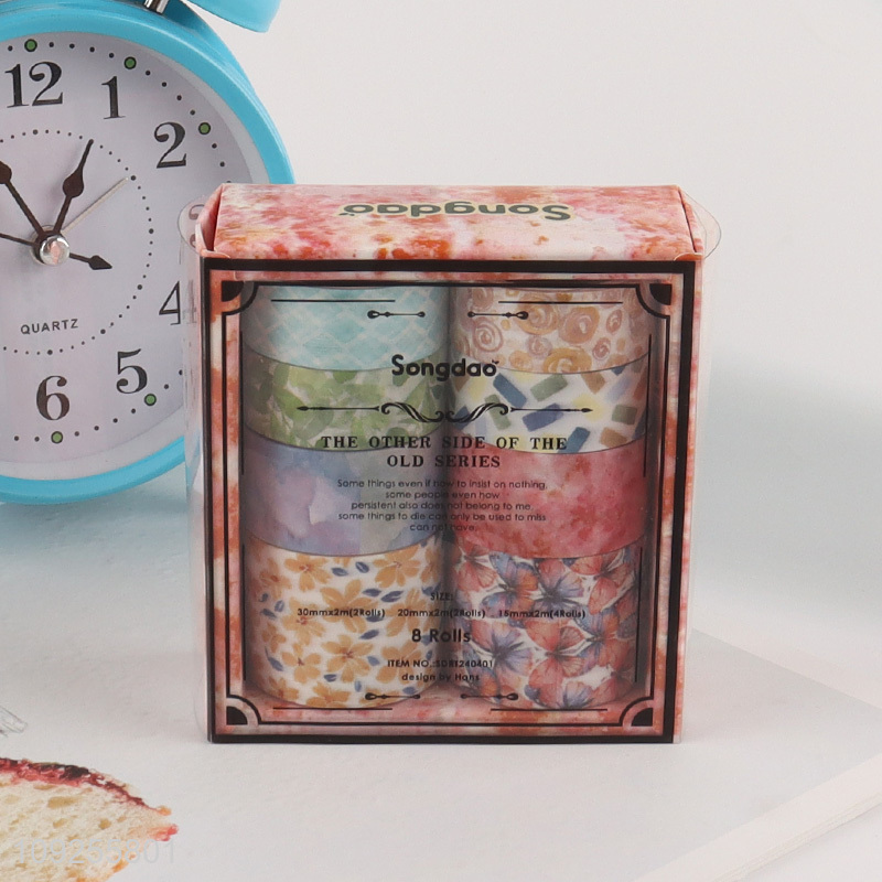 High Quality 8 Rolls Vintage Washi Tape Set Decorative Masking Tapes for DIY Journaling