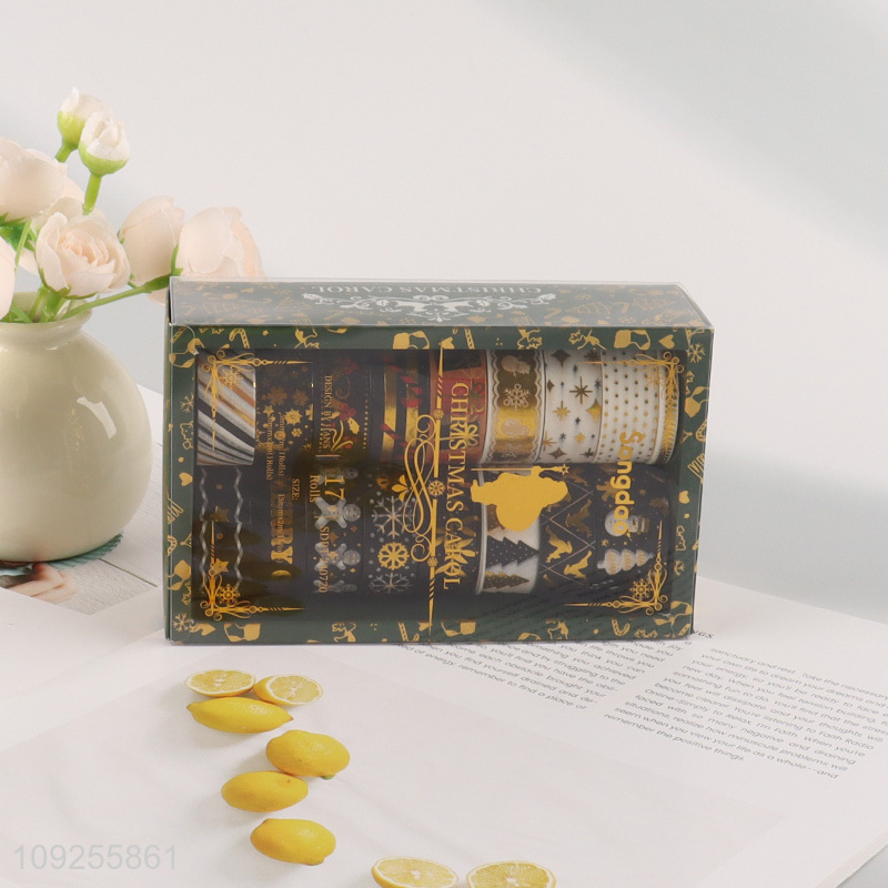 New Arrival 17 Rolls Christmas Washi Tape Set Gold Foil Holiday Tapes Masking Tape Set