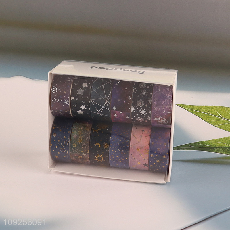 Hot Selling 12 Rolls Moon and Star Galaxy Washi Tape Set for DIY Journaling & Scrapbooking
