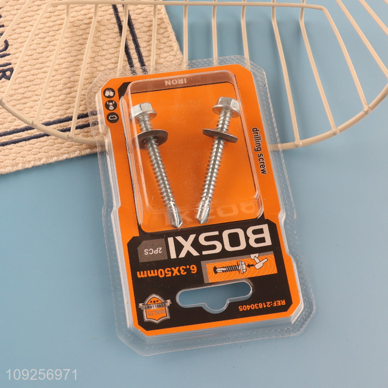 New Arrival 2 Pieces Iron Self Drilling Screws with Washer for Plastic Metal