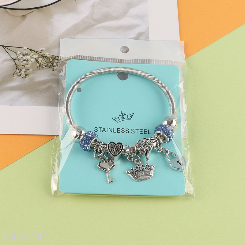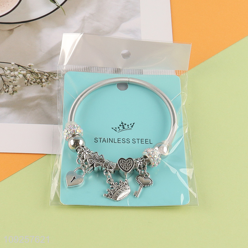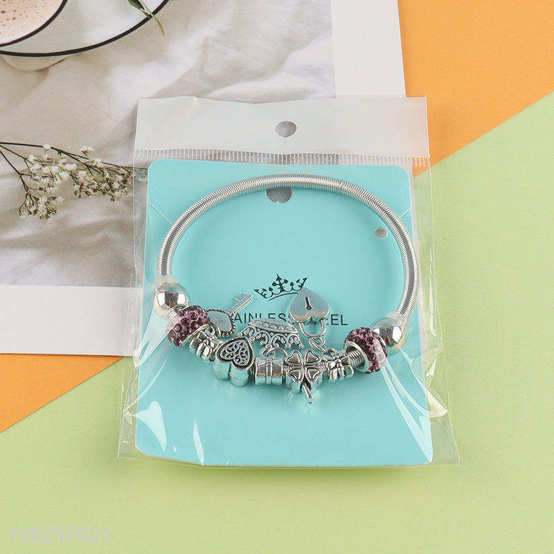 Factory Price Charm Bracelet Silver Stainless Steel Bangle for Women Girls