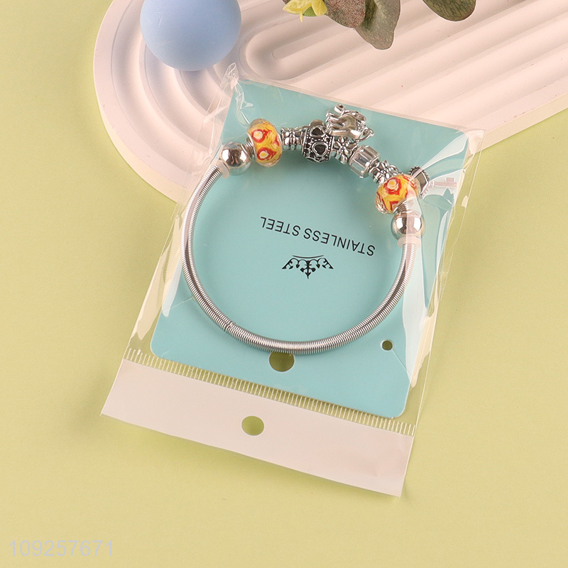 Good Quality Silver Plated Stainless Steel Bangle Charm Bracelet for Girls