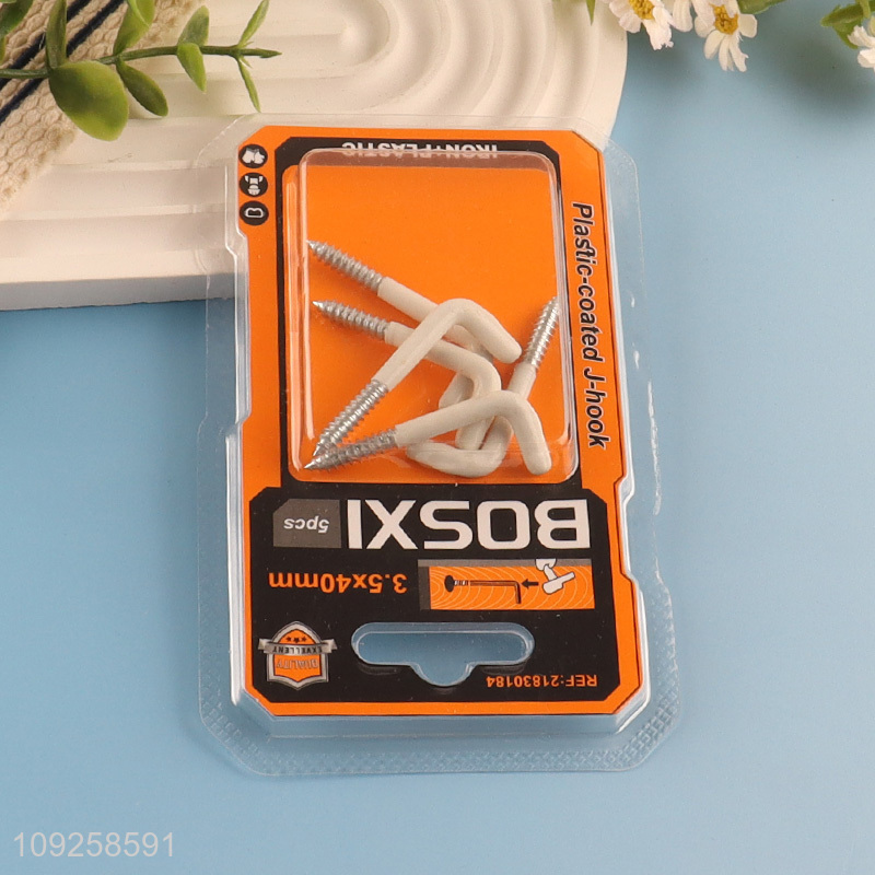 China Imports 5 Pieces Screw-in Hooks Plastic Coated Right Angle Metal Hooks